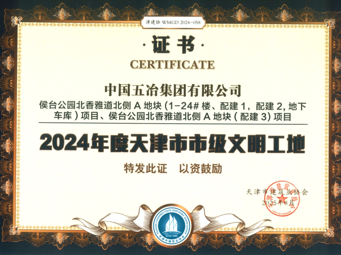 近日,中國(guó)五冶集團(tuán)華北公司承建的天津綠城水西云廬項(xiàng)目、天津中新生態(tài)城動(dòng)漫園小學(xué)項(xiàng)目、天津外國(guó)語大學(xué)附屬靜海外國(guó)語學(xué)校項(xiàng)目分別榮獲"2024年度天津市市級(jí)文明工地"稱號(hào)。